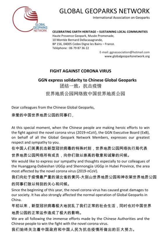 ? ? 我們完全理解你們所面臨的困難。在接下來的日子里,世界地質(zhì)公園網(wǎng)絡將會與你們并肩作戰(zhàn),共同戰(zhàn)勝疫情。