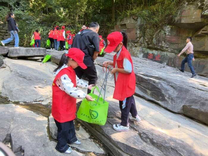 山谷流泉景區(qū)里,景區(qū)志愿者為招募而來的小學(xué)生志愿者穿上紅色小馬甲,戴上小紅帽,送上國旗貼紙和小國旗,并帶上火鉗、方便袋等小工具在景區(qū)拾撿垃圾,參與古箏學(xué)習(xí)、弈棋、朗誦古詩等豐富多彩的互動志愿活動,一抹抹“中國紅”流動在景區(qū)里,大家都感受到奉獻(xiàn)的快樂,一粒?!皭邸钡姆N子悄然播種在小志愿者的心田。與此同時,志愿者們還在山谷流泉文化園、天柱山地質(zhì)公園博物館開展免費(fèi)講解、宣傳天柱山歷史文化、天柱山故事等服務(wù)。