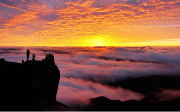 特色: 天柱山的云海是天柱山景觀中的一絕。每當(dāng)雨后放晴云開霧散時便出現(xiàn)云海,無邊際的云層,如大海之濱,波起峰涌,浪花飛濺,驚濤拍岸。漫天的云霧和層積云,隨風(fēng)飄移,時而上升,時而下墜,時而回旋,時而舒展,構(gòu)成一幅奇特的千變?nèi)f化的云海大觀。每當(dāng)云海涌來時,整個景區(qū)就被分成諸多云的海洋。被濃霧籠罩的山峰突然顯露出來,層層疊疊、隱隱約約,山之秀之奇在這里完美的表達出來。飄...
